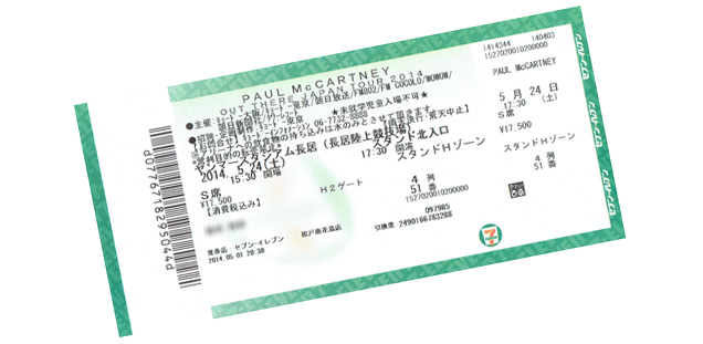 追伸:親愛なる利幸さんへ。本日5月15日、簡易書留にて Paul McCartney ライブチケット頂きました。
